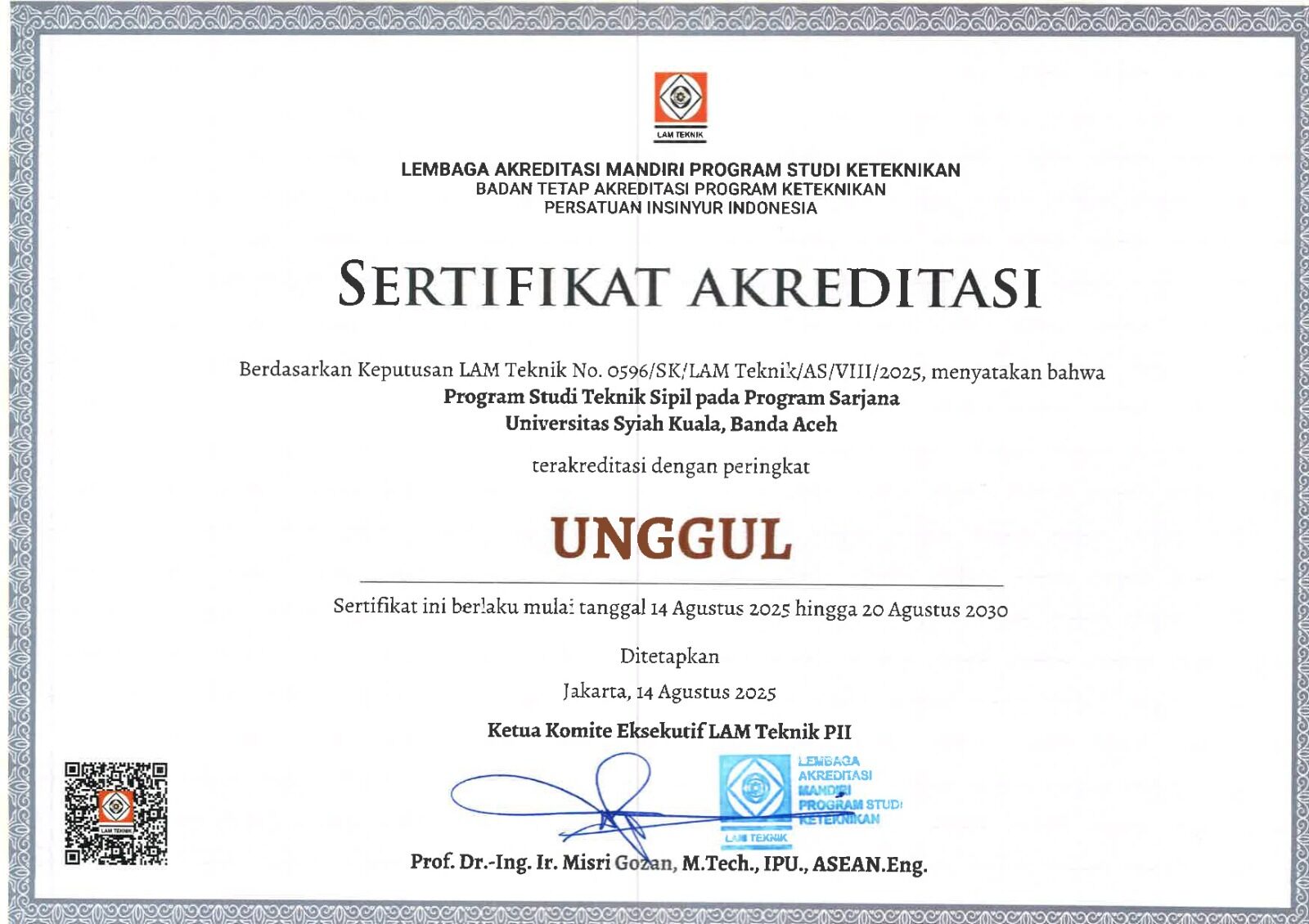 Banda Aceh – Fakultas Teknik Universitas Syiah Kuala (USK) kembali menorehkan prestasi akademik yang membanggakan. Tiga program studi di lingkungan Fakultas Teknik berhasil meraih capaian akreditasi dari Lembaga Akreditasi Mandiri Teknik (LAM Teknik) dengan hasil yang sangat baik. Berdasarkan hasil asesmen akreditasi yang telah diumumkan, Program Studi Magister Teknik Sipil (S2) dan Magister Teknik Kimia […]
