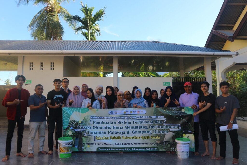 Pemanfaatan teknologi pertanian cerdas terus didorong oleh Universitas Syiah Kuala (USK) melalui Program Pengabdian kepada Masyarakat Berbasis Gampong Binaan (PKM BGB). Kali ini, dosen dan mahasiswa USK mengembangkan sistem fertilisasi dan irigasi (fertigasi) otomatis untuk mendukung budidaya tanaman palawija di Gampong Dilib Lamteungoh, Kecamatan Suka Makmur, Kabupaten Aceh Besar.
